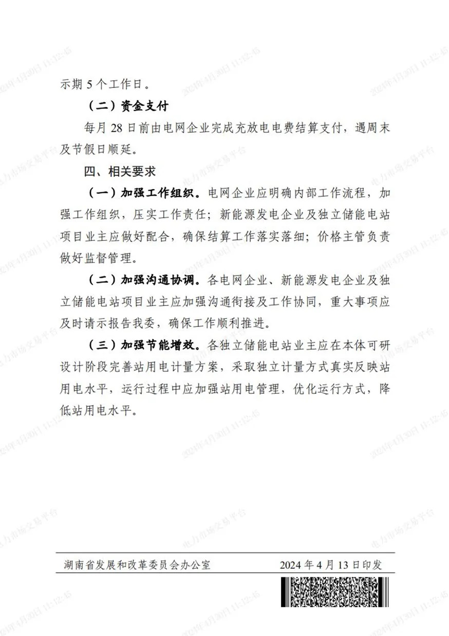 另外,方案還指出:每月由國(guó)網(wǎng)湖南省電力有限公司將全省應(yīng)配置儲(chǔ)能的新能源項(xiàng)目清單及應(yīng)配置容量、未落實(shí)配儲(chǔ)要求的新能源項(xiàng)目清單及未配置容量、獨(dú)立儲(chǔ)能項(xiàng)目清單及可配置容量、上月需清算的充放電價(jià)差資金總量及電量分?jǐn)偨Y(jié)果報(bào)我發(fā)改委同意后公示,公示期5個(gè)工作日。