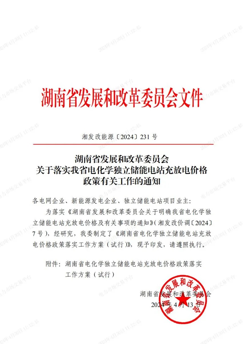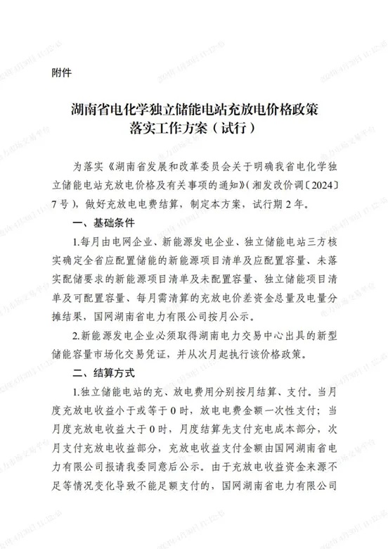 近日,湖南發(fā)改委發(fā)布《湖南省發(fā)展和改革委員會(huì)關(guān)于落實(shí)我省電化學(xué)獨(dú)立儲(chǔ)能電站充放電價(jià)格政策有關(guān)工作的通知》,并隨通知下發(fā)了《湖南省電化學(xué)獨(dú)立儲(chǔ)能電站充放電價(jià)格政策落實(shí)工作方案》。