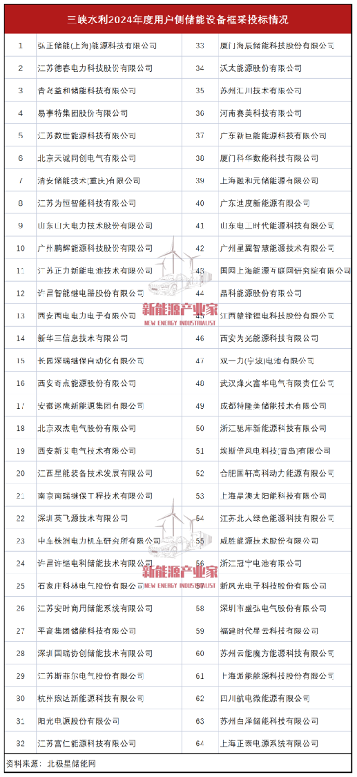 不久前,三峽水利2024年度用戶側(cè)儲(chǔ)能設(shè)備框架協(xié)議采購(gòu),總共有64家企業(yè)投標(biāo)。