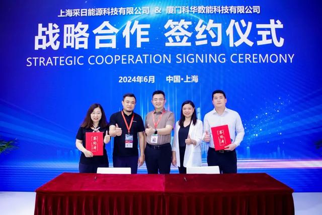 6月14日,采日能源技術(shù)中心副總經(jīng)理孫麗娜、廈門科華數(shù)能科技有限公司上海區(qū)域業(yè)務負責人許瑜平作為雙方代表,正式簽署了戰(zhàn)略合作協(xié)議。廈門科華數(shù)能科技有限公司總裁崔劍、副總裁李元元、采日能源總經(jīng)理王健鵬等雙方領導出席并見證簽約。