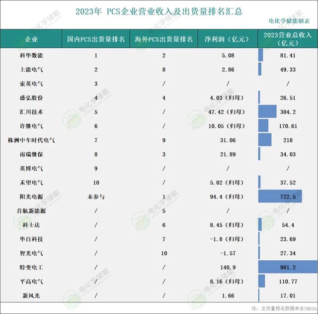 2023年度,海外市場(chǎng)中,儲(chǔ)能PCS出貨量排名前十位的中國(guó)企業(yè),依次為:陽光電源、科華數(shù)能、南瑞繼保、盛弘股份、首航新能源、科士達(dá)、華自科技、上能電氣、株洲中車時(shí)代電氣和智光儲(chǔ)能。