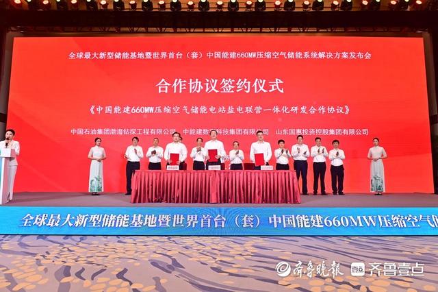 6月26日,由中國能建主辦、山東國惠協(xié)辦的全球最大新型儲能基地暨《世界首臺(套)中國能建660MW壓縮空氣儲能系統(tǒng)解決方案》發(fā)布會,在山東濟(jì)南隆重舉行。世界最大規(guī)模新型儲能基地啟動、最大容量壓氣儲能系統(tǒng)解決方案發(fā)布,標(biāo)志著我國在壓縮空氣儲能領(lǐng)域再攀新高峰,將加速推動儲能行業(yè)規(guī)?;?、產(chǎn)業(yè)化發(fā)展,成為新型電力系統(tǒng)中高比例綠電消納、保證系統(tǒng)安全的重要支撐。