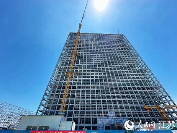 中國(guó)天楹如東重力儲(chǔ)能示范項(xiàng)目形似“大魔方”。人民網(wǎng) 周夢(mèng)嬌攝