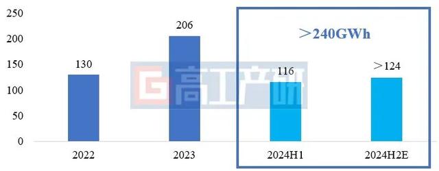 根據(jù)高工產(chǎn)研儲能研究所(GGII)調(diào)研統(tǒng)計,2024年上半年中國儲能鋰電池出貨量116GWh,相較2023年上半年87GWh,增長41%。其中一季度出貨量40GWh,二季度出貨量76GWh。GGII預計2024年全年儲能鋰電池出貨量超240GWh,其中電力儲能將成為2024年增長最主要驅(qū)動力;戶用/通信/便攜式儲能市場需求將有所放緩,全年出貨低于預期。