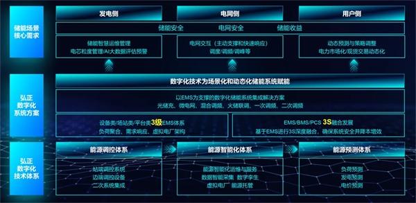 弘正儲能自成立以來,就把數(shù)字化作為儲能解決方案的切入點,形成了能源調(diào)控、能源智能化和能源預測三大數(shù)字化儲能體系,結(jié)合自主研發(fā)的EMS能量管理系統(tǒng)強大的數(shù)據(jù)采集、轉(zhuǎn)發(fā)及邊緣計算能力,能夠充分滿足虛擬電廠對站點的數(shù)據(jù)采集、策略控制的各類要求,保障儲能設(shè)備能夠順暢地接入虛擬電廠平臺。