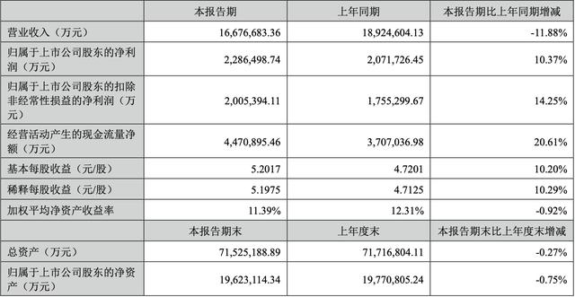 7月26日晚,寧德時代發(fā)布2024年半年報。今年上半年,寧德時代實現(xiàn)營業(yè)總收入1667.7億元,同比下降11.88%;歸屬于上市公司股東的凈利潤為228.7億元,同比增長10.37%;實現(xiàn)歸屬于上市公司股東的扣除非經(jīng)常性損益的凈利潤為200.5億元,同比增長14.25%。此外,今年上半年寧德時代綜合毛利率為26.5%,同比增長4.9個百分點。