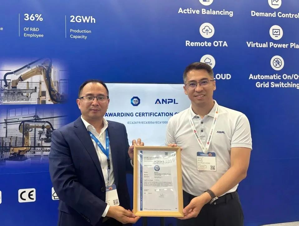 認(rèn)證展會現(xiàn)場,安瑞哲這款儲能柜獲頒歐洲市場權(quán)威的TüV南德認(rèn)證證書。南德TüV是世界上規(guī)模最大、最悠久認(rèn)證機(jī)構(gòu)之一,得到全球的廣泛認(rèn)可。南德TüV對其新品的認(rèn)同,不僅因?yàn)槠浞闲袠I(yè)標(biāo)準(zhǔn),還源于產(chǎn)品的創(chuàng)新設(shè)計(jì)。安瑞哲總經(jīng)理張登基介紹,HULK 200具備單體容量可調(diào)控的特點(diǎn),其單體容量范圍為100~200KWh,多機(jī)并聯(lián)可擴(kuò)展至MWh級容量,靈活配置可滿足不同客戶需求。依托安瑞哲自主研發(fā)的風(fēng)冷系統(tǒng),電池模組和系統(tǒng)的防水等級均有了大幅提升,有力保障了運(yùn)行安全。創(chuàng)新的散熱板和風(fēng)道設(shè)計(jì)確保設(shè)備在各種環(huán)境下都能穩(wěn)定運(yùn)行,產(chǎn)品既媲美液冷的散熱性能,又保留風(fēng)冷的高效運(yùn)維。