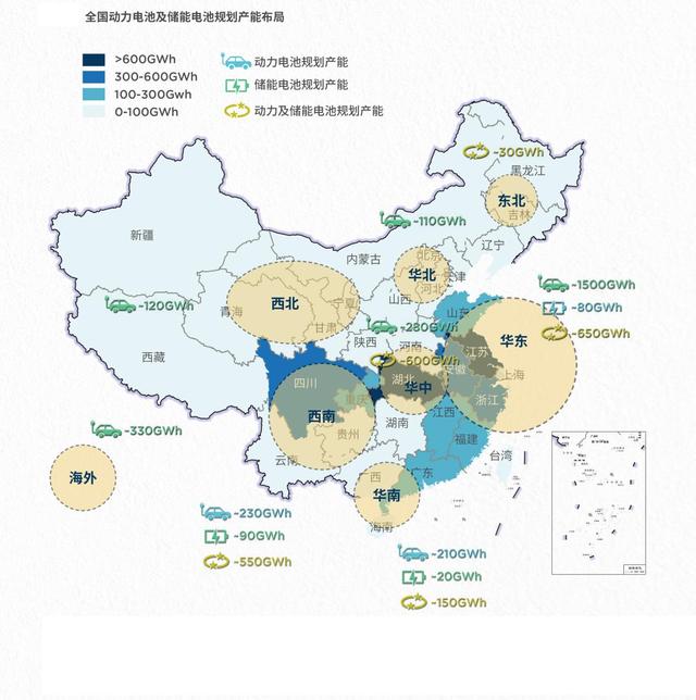 全國動力電池及儲能電池規(guī)劃產(chǎn)能布局