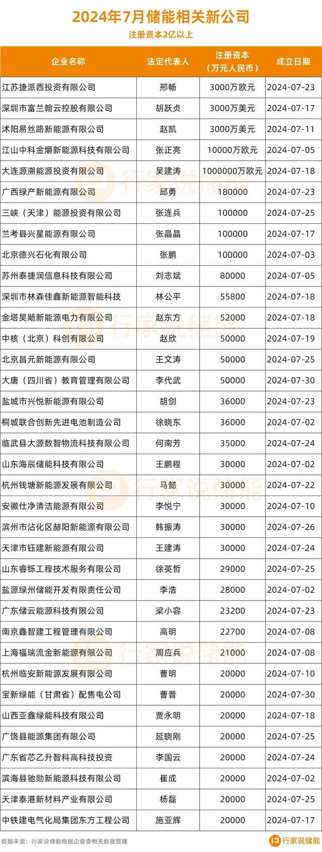 近日,多家儲(chǔ)能相關(guān)新公司及子公司成立。另?yè)?jù)企查查數(shù)據(jù)顯示,2024年1-7月新注冊(cè)儲(chǔ)能相關(guān)公司48708家,平均算下來日增近200家。