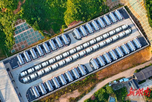 8月22日,通道侗族自治縣塘沖儲(chǔ)能電站,一排排電池艙在陽光映照下蔚為壯觀。