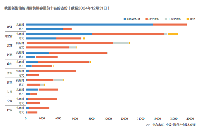 2024年,我國電力儲能項目的累計裝機容量達到137.9吉瓦。其中,新型儲能裝機規(guī)模首次超過抽水蓄能,達到78.3吉瓦/184.2吉瓦時,功率和能量規(guī)模同比分別增長126.5%和147.5%。