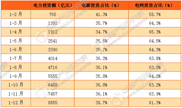 近日,國(guó)家能源局公布了2016年全國(guó)電力工業(yè)數(shù)據(jù)。數(shù)據(jù)顯示,2016年1-12月,全國(guó)電力投資額達(dá)到8855億元,其中,電源投資占比達(dá)到38.7%,電網(wǎng)投資占比達(dá)到61.3%。