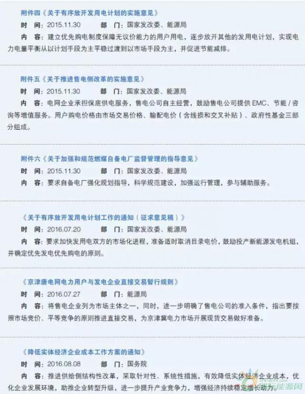 《電力發(fā)展“十三五”規(guī)劃》出臺,指出在電力體制改革方面,組建相對獨立和規(guī)范運行的電力交易機構(gòu),建立公平有序的電力市場規(guī)則,初步形成功能完善的電力市場。深入推進簡政放權(quán)。一是核定輸配電價。2017年底前,完成分電壓等級核定電網(wǎng)企業(yè)準許總收入和輸配電價,逐步減少電價交叉補貼。二是建立健全電力市場體系。建立標準統(tǒng)一的電力市場交易技術(shù)支持系統(tǒng),積極培育合格市場主體,完善交易機制,豐富交易品種。2016年啟動東北地區(qū)輔助服務(wù)市場試點,成熟后全面推廣。2018年底前,啟動現(xiàn)貨交易試點;2020年全面啟動現(xiàn)貨交易市場,研究風險對沖機制。三是組建相對獨立和規(guī)范運行的電力交易機構(gòu)。四是有序放開發(fā)用電計劃。2020年前逐步取消優(yōu)先發(fā)電權(quán)以外的非調(diào)節(jié)性發(fā)電計劃。五是全面推進配售電側(cè)改革。2018年底前完成售電側(cè)市場競爭主體培育工作。