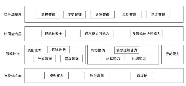 該架構(gòu)以?場景需求為牽引??,通過協(xié)同層打通系統(tǒng)壁壘,以智能體層的感知-決策-行動閉環(huán)為核心能力載體,最終由底座提供工程化支撐。四層能力環(huán)環(huán)相扣,既明確了技術(shù)能力邊界,又強調(diào)實際落地場景的適配性,為企業(yè)構(gòu)建智能運維體系提供清晰的模塊化建設(shè)路徑。