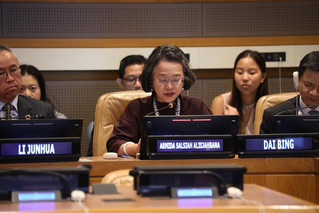 當(dāng)?shù)貢r(shí)間7月13日,聯(lián)合國(guó)可持續(xù)發(fā)展高級(jí)別政治論壇能源主題邊會(huì)在紐約聯(lián)合國(guó)總部舉行,聯(lián)合國(guó)副秘書長(zhǎng)兼聯(lián)合國(guó)亞洲及太平洋經(jīng)濟(jì)社會(huì)委員會(huì)執(zhí)行秘書阿米達(dá)·阿利斯夏巴納在會(huì)上講話。(合作組織供圖)