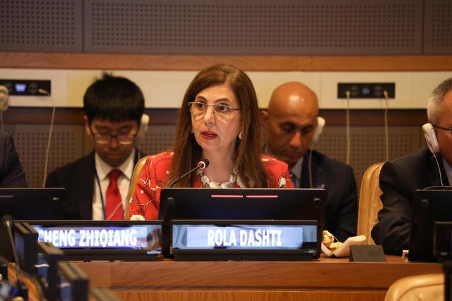 聯(lián)合國(guó)副秘書長(zhǎng)兼聯(lián)合國(guó)西亞經(jīng)社會(huì)執(zhí)行秘書羅拉·達(dá)什提在主題邊會(huì)上講話。(合作組織供圖)