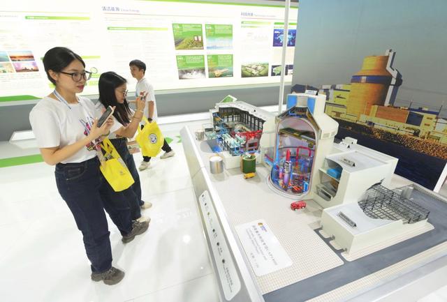 10月20日,第24屆東亞及西太平洋電力工業(yè)協(xié)會大會上,參觀者在國家電力投資集團有限公司展位參觀拍攝“國和一號”核電機組模型。新華社記者林善傳攝