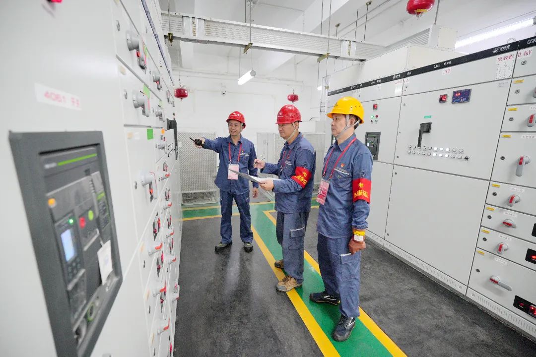 ▲南方電網(wǎng)廣東汕頭龍湖供電局保供電工作人員在賽時對電鴻化模塊及相關(guān)電力設備進行檢查。(吳子琳 攝)