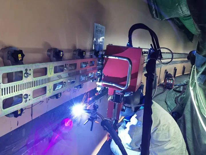 在三澳核電項目,智能激光跟蹤MAG自動焊技術覆蓋鋼襯里底板、筒體到穹頂車間預制和現(xiàn)場安裝的全流程系列化、多工況場景的全面應用,形成了具有完全自主知識產(chǎn)權的鋼襯里建造高效智能焊接先進技術體系,具有顯著的經(jīng)濟社會效益。三澳核電一期項目累計焊縫長度約3763m,共拍片2930張,一次合格率為97.2%,焊接質(zhì)量穩(wěn)定。