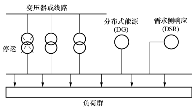 文獻(xiàn)[8]在現(xiàn)有設(shè)計標(biāo)準(zhǔn)和配電規(guī)劃方法的基礎(chǔ)上,提出了一個評估需求側(cè)響應(yīng)(DSR)提高配網(wǎng)安全運(yùn)行能力的新方法:首先隨機(jī)選擇DSR方案的運(yùn)行域,其次用解析法計算與各方案對應(yīng)的可靠性指標(biāo),在此基礎(chǔ)上評估DSR的容量價值,最后在滿足可靠性與經(jīng)濟(jì)性要求之間找到一個折中的解決方案。