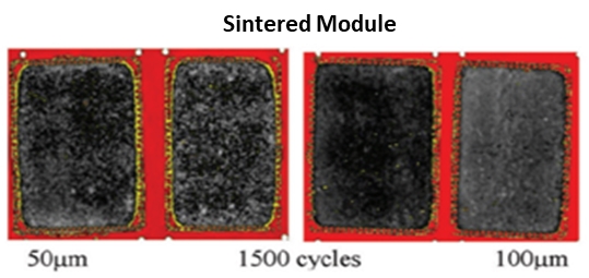 傳統(tǒng)焊料在高溫波動(dòng)及高功率循環(huán)條件下易產(chǎn)生疲勞效應(yīng),導(dǎo)致連接層失效,從而影響模塊的使用壽命。燒結(jié)銀技術(shù),通過提高連接層的強(qiáng)度和穩(wěn)定性,有效延長了功率模塊的使用壽命。