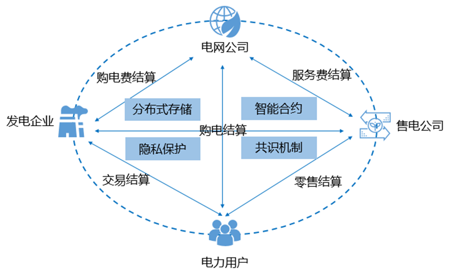 市場化的電費(fèi)結(jié)算是能源交易的核心業(yè)務(wù),我國的電費(fèi)結(jié)算技術(shù)開始于1960年,隨后被廣泛應(yīng)用于各行各業(yè)。目前,我國普遍采取“預(yù)購電”方式結(jié)算電費(fèi),但這種模式對分布式新能源接入等多種新場景,存在能量流、信息流不統(tǒng)一,交易流程長、響應(yīng)不及時(shí)、合同履約難掌控、信用體系難建立等問題。