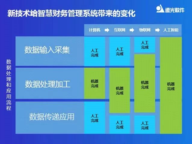 新技術(shù)會(huì)令智慧財(cái)務(wù)管理系統(tǒng)帶來哪些變化?陳婷表示改變主要體現(xiàn)在三個(gè)階段,即數(shù)據(jù)的輸入采集階段、數(shù)據(jù)的處理加工階段和數(shù)據(jù)的傳遞應(yīng)用階段。