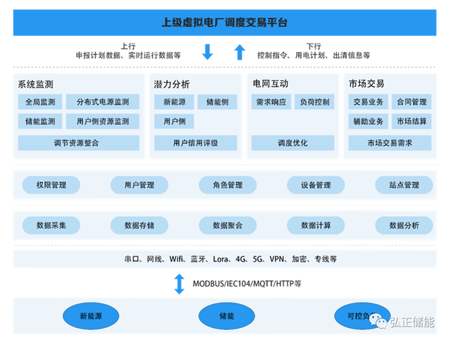 弘正數(shù)字化儲(chǔ)能平臺(tái),不僅可以滿足源網(wǎng)側(cè)、用戶側(cè)等多元化場(chǎng)景應(yīng)用。更重要的是,它可以作為虛擬電廠的核心組成部分,將用戶側(cè)分散的清潔能源、儲(chǔ)能系統(tǒng)、可控負(fù)荷等多種可調(diào)節(jié)資源聚合起來(lái),參與電力市場(chǎng)交易、參與需求側(cè)響應(yīng)、提供電網(wǎng)輔助服務(wù)等,不僅能夠提供靈活的能量存儲(chǔ)與釋放,還能增強(qiáng)電網(wǎng)的穩(wěn)定性和可靠性,助力可再生能源的大規(guī)模應(yīng)用。