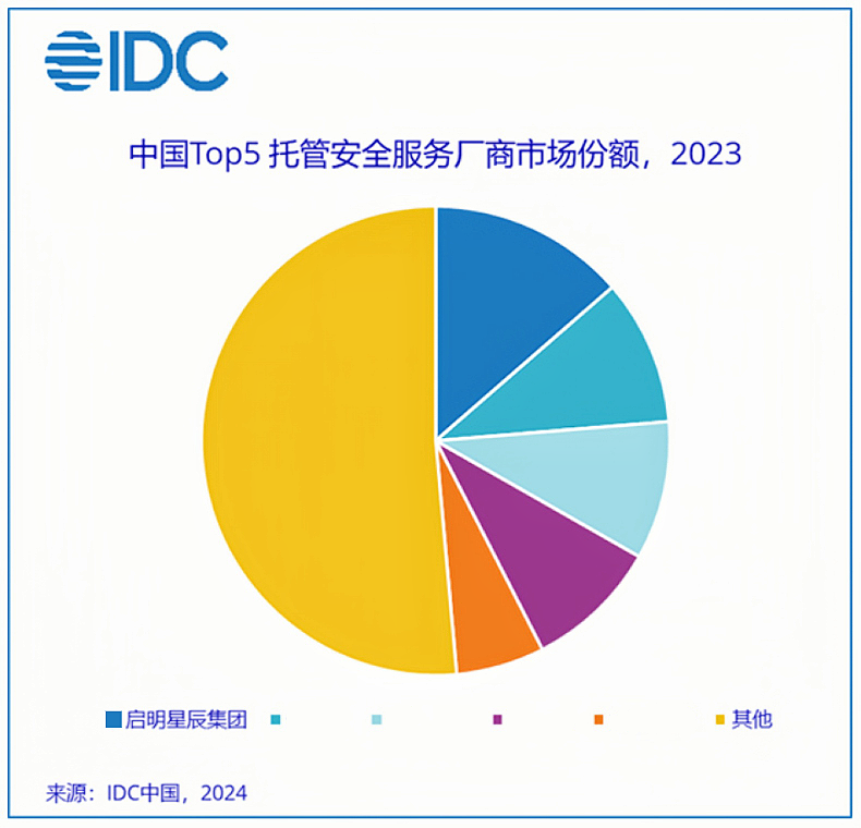 本網(wǎng)訊 近日,IDC發(fā)布《中國IT安全服務(wù)市場跟蹤報告,2023H2》。報告顯示,啟明星辰集團以13.6%的市場份額再度穩(wěn)居托管安全服務(wù)市場第 一。至此,啟明星辰集團已連續(xù)五年領(lǐng)跑該領(lǐng)域市場,市場占有率穩(wěn)步增長。