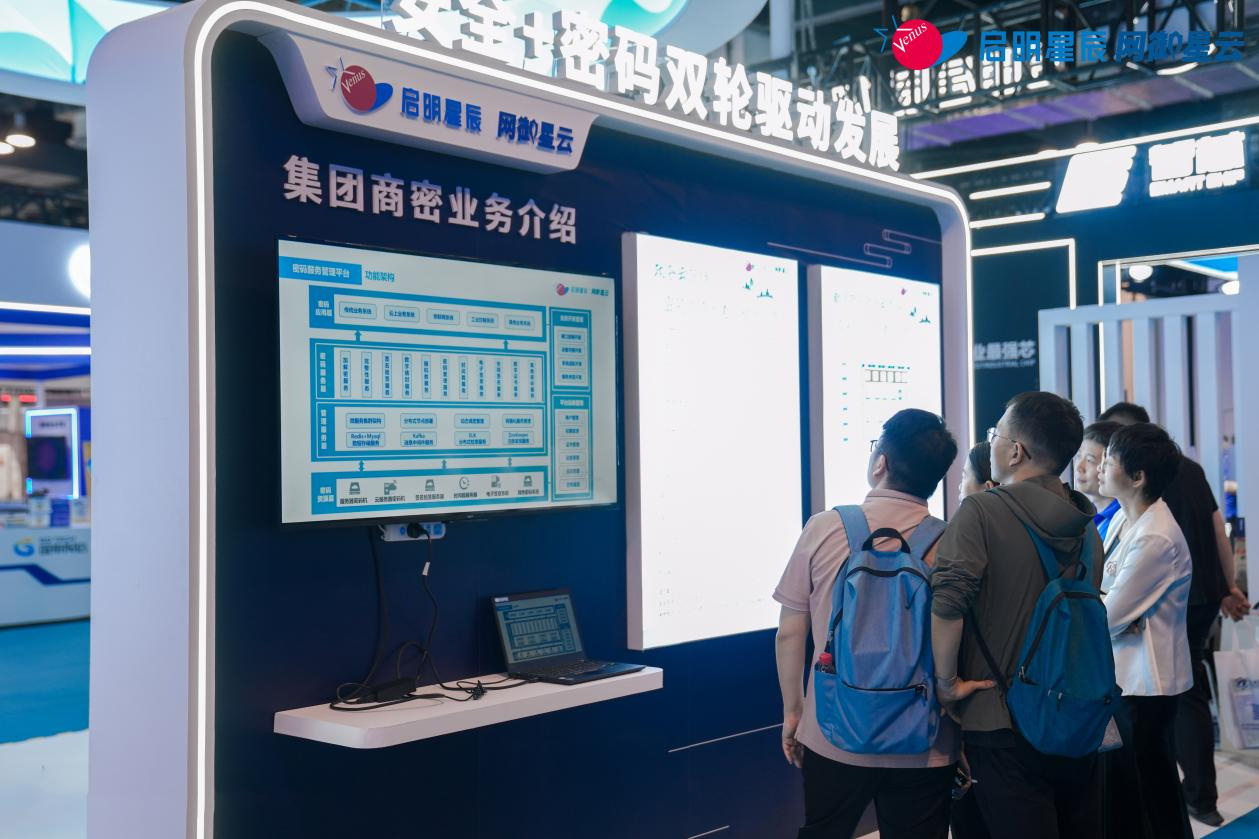 本次展會上,啟明星辰集團集中展示了其在商用密碼應用安全領域的產(chǎn)品矩陣與創(chuàng)新實踐,包括密碼服務管理平臺、密鑰管理系統(tǒng)、云服務器密碼機、服務器密碼機、簽名驗簽服務器、電子簽章系統(tǒng)、數(shù)據(jù)透明加解密系統(tǒng)等市場主流商用密碼產(chǎn)品,及零信任SDP安全網(wǎng)關、高性能VPN安全網(wǎng)關、量子VPN安全網(wǎng)關等諸多新型密碼安全工程實踐,吸引眾多與會領導、行業(yè)專家、觀展嘉賓等駐足交流。