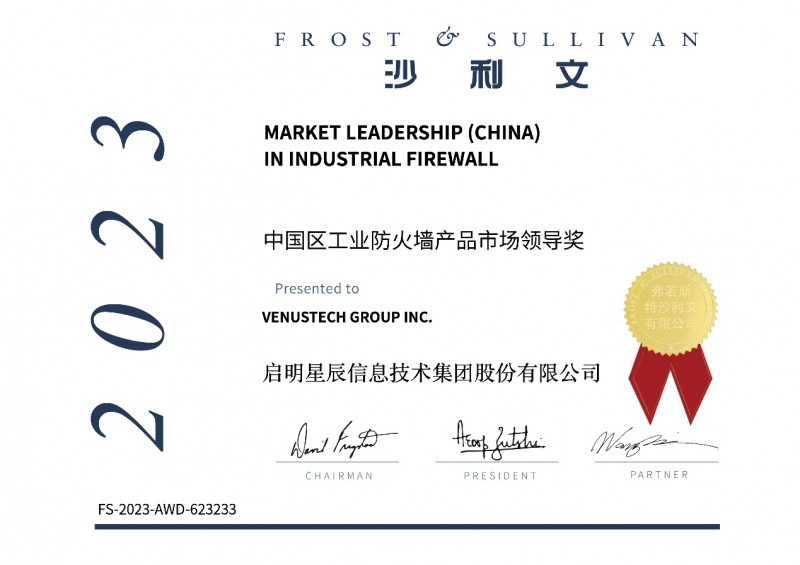 本網(wǎng)訊 近日,弗若斯特沙利文(Frost & Sullivan,以下簡稱“沙利文”)正式發(fā)布2023年中國工業(yè)防火墻市場排名,啟明星辰集團(tuán)工業(yè)防火墻以36.7%的市場份額雄踞榜首,并再次榮獲“2023年度中國區(qū)工業(yè)防火墻產(chǎn)品市場領(lǐng)導(dǎo)獎”。至此,啟明星辰集團(tuán)已連續(xù)六年領(lǐng)跑中國工業(yè)防火墻市場。