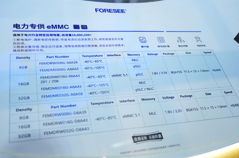 在電力行業(yè),設(shè)備需要采集和處理數(shù)據(jù),同時(shí)還需要記錄和存儲(chǔ)異常信息、警告信息等,因此,在電力設(shè)備中,必須有一種可靠、高效的存儲(chǔ)方式來確保數(shù)據(jù)的安全性和完整性。為此,江波龍?zhí)貏e設(shè)計(jì)了 FORESEE 電力專用 eMMC,其產(chǎn)品規(guī)格、測(cè)試標(biāo)準(zhǔn)、固件功能均為電力領(lǐng)域量身打造,也是PTM商業(yè)模式在電力行業(yè)的實(shí)踐。該產(chǎn)品系列提供 8GB 至 32GB 的容量選擇,并支持-40℃~85℃以及-40℃~105℃兩種寬溫工作環(huán)境。經(jīng)過嚴(yán)格的高低溫測(cè)試和多項(xiàng)可靠性驗(yàn)證,產(chǎn)品均展現(xiàn)出卓越的抗沖擊能力,確保在極端溫差下也能穩(wěn)定運(yùn)行,滿足電力行業(yè)在惡劣環(huán)境下的應(yīng)用需求。