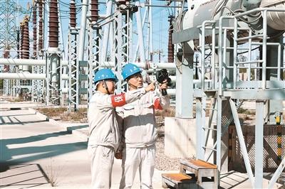 大唐國際托克托發(fā)電公司工作人員在檢查高壓設(shè)備。朱 森攝