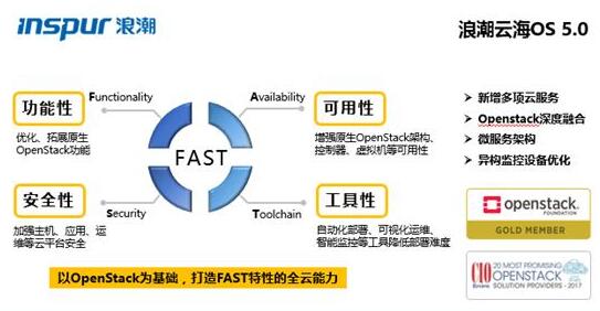 對于OpenStack架構未來的發(fā)展,張東認為"FAST"云計算產品設計理念是浪潮建立差異化競爭優(yōu)勢的重心所在。浪潮的"FAST"是指從Functionality(功能性)、Availability(可用性)、Security(安全性)、Toolchain(工具化)著手,提供成熟、完善、易用的OpenStack方案型產品,推動開源技術更好普惠。