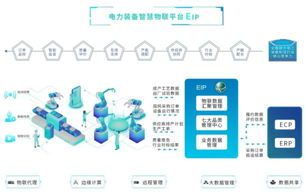 電工裝備智慧物聯(lián)平臺(tái)EIP(Electrical Equipment Intelligent IOT Platform)著力實(shí)現(xiàn)“物聯(lián)一張網(wǎng)”,構(gòu)建供需雙方開放互信的物聯(lián)平臺(tái),利用物聯(lián)技術(shù)打通了供需雙方的數(shù)據(jù)壁壘,實(shí)現(xiàn)供應(yīng)鏈供需協(xié)同、數(shù)據(jù)共生共享。