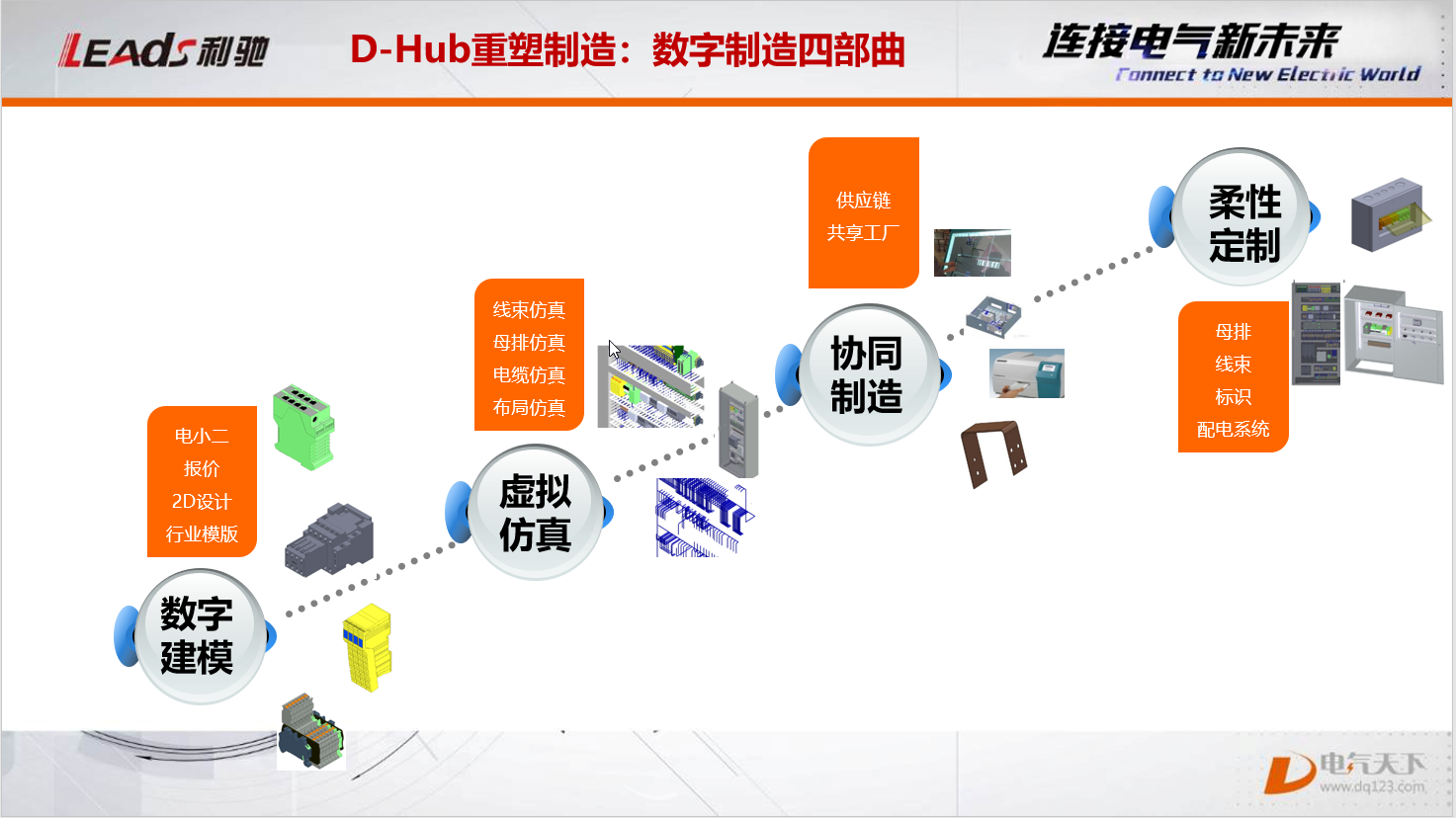采訪中,令永卓感慨道:“我已經(jīng)服務(wù)于電氣行業(yè)25年,很榮幸作為參與者一路見證電氣行業(yè)由傳統(tǒng)走向今天的智能化,這些離不開智能制造近年來的大力推動。當(dāng)前企業(yè)紛紛將其納入發(fā)展的戰(zhàn)略目標(biāo),利馳也不例外,不斷創(chuàng)新研發(fā),先后推出了工業(yè)電氣一站式工作平臺——電氣天下和D-Hub企業(yè)數(shù)字化協(xié)同平臺,幫助電力裝備制造行業(yè)智造升級。” 據(jù)了解,電氣天下針對個人用戶開放服務(wù),提供海量免費(fèi)工業(yè)設(shè)計(jì)軟件、選型數(shù)據(jù)及服務(wù)、專業(yè)文獻(xiàn)等資源,幫助電氣行業(yè)上下游實(shí)現(xiàn)電氣的選型、圖紙、樣本資料、軟件下載,涵蓋電氣指數(shù)、電氣智庫知識分享一體化與一站式的服務(wù)。而把眾多工業(yè)軟件集成到一個云端數(shù)據(jù)庫,一個統(tǒng)一的數(shù)字化協(xié)同平臺——D-Hub,則成功地打通了選型、報(bào)價、設(shè)計(jì)、工藝、制造、供應(yīng)鏈的數(shù)據(jù),使得企業(yè)的數(shù)據(jù)資產(chǎn)可以跨部門、跨企業(yè)的共享和復(fù)用,并讓數(shù)據(jù)在流動中不斷增值。目前D-hub已覆蓋多種模板,建立了以3D元件為核心的覆蓋配電、自動化行業(yè)1000多個品牌、3萬多個系列、2.5億多個電氣及自動化元件數(shù)據(jù)庫。令永卓直言:“D-Hub的功能遠(yuǎn)不止此,利馳已經(jīng)在D-Hub上開始發(fā)力,發(fā)展數(shù)據(jù)可視化技術(shù),進(jìn)而實(shí)現(xiàn)設(shè)備互聯(lián)、產(chǎn)線互聯(lián),以及智能調(diào)度,助力電力裝備業(yè)的設(shè)計(jì)、制造的全流程數(shù)字化。并且,未來D-Hub將帶來更多可能性,實(shí)現(xiàn)設(shè)備數(shù)字化,進(jìn)而將設(shè)備資產(chǎn)與維修工程師和設(shè)備生產(chǎn)商連接起來,實(shí)現(xiàn)資源互聯(lián)和設(shè)備在線,最終實(shí)現(xiàn)智能運(yùn)維,更好地服務(wù)電力電氣行業(yè)。”