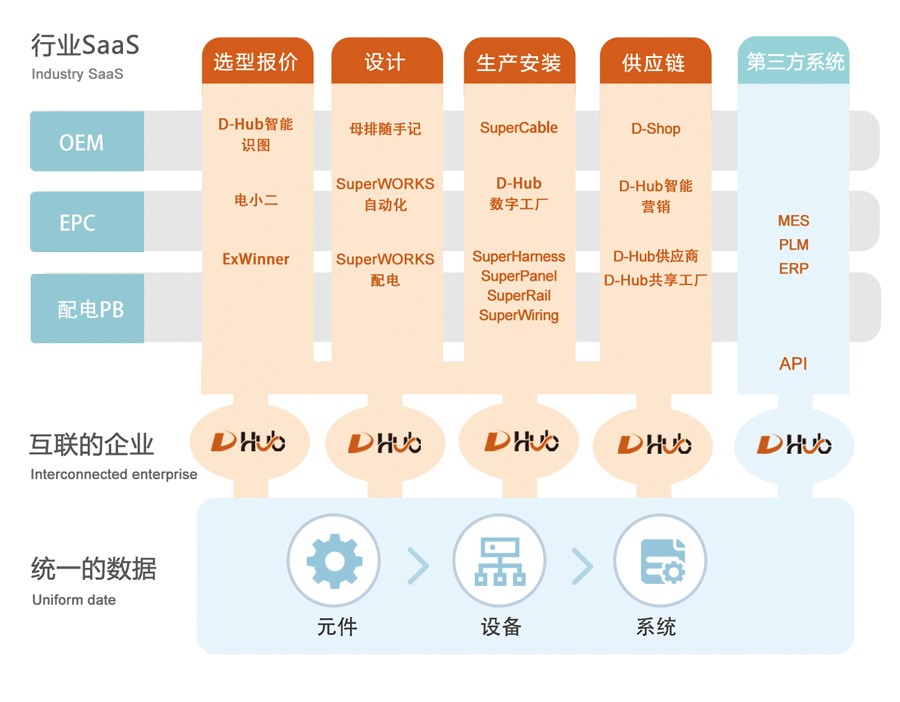 令永卓深諳數(shù)據(jù)的價值。他帶著創(chuàng)業(yè)家的韌勁,敏銳洞察電力裝備制造行業(yè)的發(fā)展趨勢,本著從數(shù)據(jù)中學(xué)習(xí)、改變電力電氣行業(yè)的初衷,從數(shù)據(jù)中提取價值服務(wù)用戶的理念,提出用數(shù)據(jù)賦能行業(yè),致力于打通數(shù)據(jù)流。談起如今專注挖掘數(shù)據(jù)的價值,令永卓表示,這一切源于他求學(xué)時代的經(jīng)歷。大學(xué)期間,在清華工程力學(xué)系求學(xué)的令永卓建立了面向問題建立數(shù)學(xué)模型,把復(fù)雜的非線性問題抽象為簡單的線性問題進(jìn)行求解的思維方式。在后來的工作中,他發(fā)現(xiàn)設(shè)備的設(shè)計(jì)、生產(chǎn)制造以及運(yùn)維之間并非真正有效連接,存在嚴(yán)重的數(shù)據(jù)偏差甚至脫節(jié)的現(xiàn)象,為達(dá)到設(shè)計(jì)、制造以及供應(yīng)鏈的協(xié)同,他提出在電力裝備制造行業(yè)形成貫穿橫向、縱向、端到端的數(shù)據(jù)流通的舉措。之后,他將創(chuàng)想落地,從電氣軟件的數(shù)據(jù)建模開始,制定標(biāo)準(zhǔn),進(jìn)行3D仿真,通過機(jī)器智能設(shè)計(jì)、智能識圖、智能報(bào)價,進(jìn)而幫助產(chǎn)品實(shí)現(xiàn)協(xié)同制造。令永卓透露:“當(dāng)前基于D-Hub制造的縱向數(shù)據(jù)流與D-Hub供應(yīng)鏈的橫向數(shù)據(jù)流已經(jīng)被成功打通,下一步我們將重點(diǎn)打通集產(chǎn)品研發(fā)、系統(tǒng)設(shè)計(jì)、安裝施工、運(yùn)營維護(hù)的D-Hub運(yùn)維的端到端數(shù)據(jù)流。”