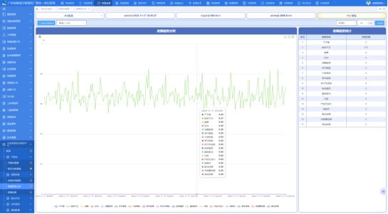 圖注:系統(tǒng)可以多選或全選“選擇工藝測(cè)點(diǎn)/故障類型”,還能查看任意時(shí)間段對(duì)應(yīng)的故障趨勢(shì)分析圖譜
