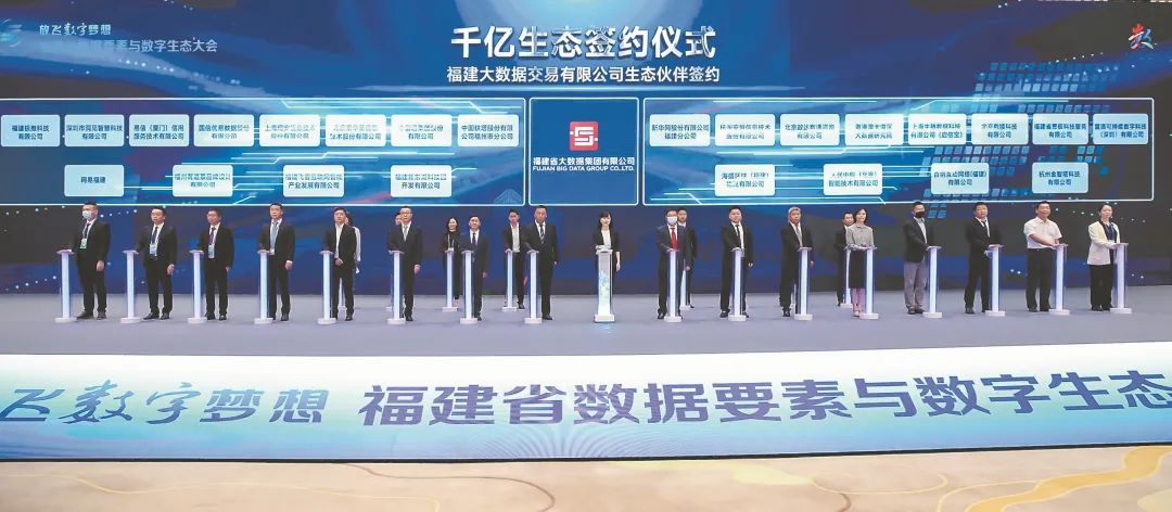 2022年數(shù)字峰會期間舉行的福建大數(shù)據(jù)交易所千億生態(tài)簽約儀式