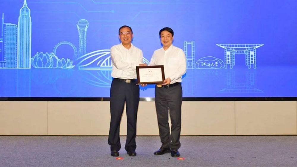 校長楊桂山為謝億民院士頒發(fā)聘書
