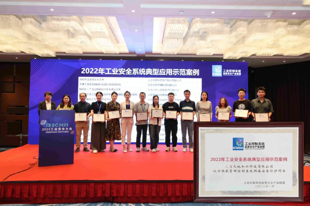 在大會(huì)頒獎(jiǎng)環(huán)節(jié),天地和興憑借在工控信息安全領(lǐng)域豐富的實(shí)踐經(jīng)驗(yàn),深厚的技術(shù)積累,經(jīng)過數(shù)月的專家審核、評(píng)分,榮獲工業(yè)控制系統(tǒng)信息安全產(chǎn)業(yè)聯(lián)盟 “2022工業(yè)安全系統(tǒng)典型應(yīng)用示范案例”。