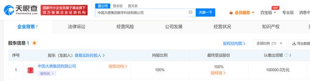 股東信息顯示,該公司由中國大唐集團有限公司全資持股。