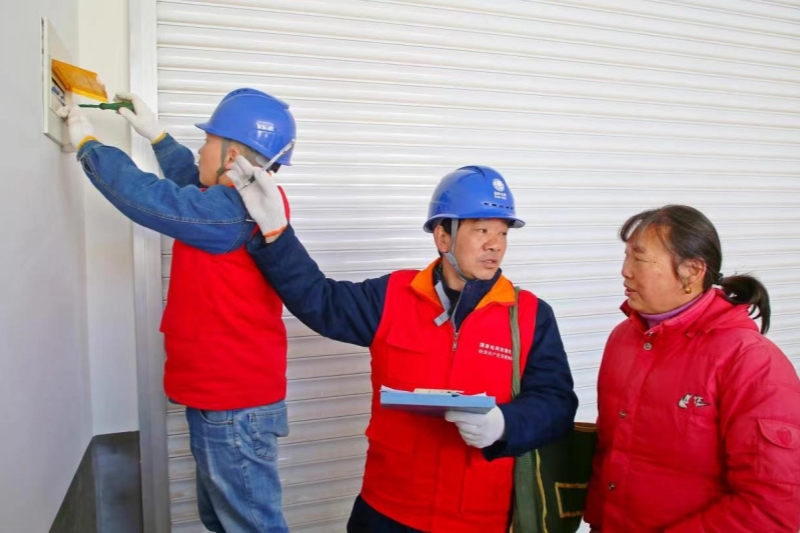 國網(wǎng)安徽合肥供電公司工作人員為居民王登月檢查家中用電線路。