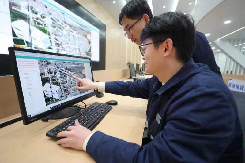 國網(wǎng)天津城南供電公司供電服務(wù)指揮人員利用“全景保供電場景”監(jiān)測設(shè)備運(yùn)行狀態(tài)。