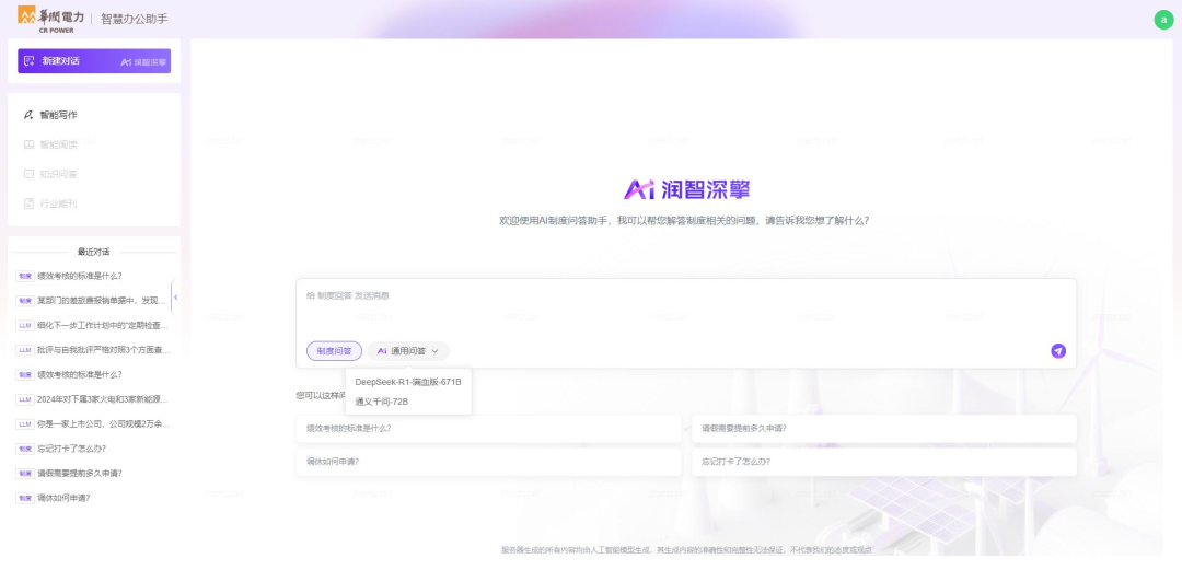 華潤電力正在快速推進智慧辦公助手建設(shè),計劃今年上半年完成智能寫作、行業(yè)期刊等模塊建設(shè)。