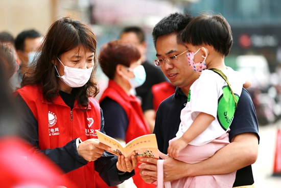 中國(guó)電力網(wǎng)訊 6月16日,在壽光市渤海路步行街上,十幾名身穿紅馬甲的人正穿梭于來(lái)往的人群之中,他們有的發(fā)放安全用電常識(shí)宣傳畫冊(cè),有的給人們介紹如何使用互聯(lián)網(wǎng)繳費(fèi)知識(shí)……這是國(guó)網(wǎng)壽光市供電公司工作人員在積極參加壽光市“安全生產(chǎn)宣傳咨詢?nèi)?rdquo;活動(dòng)。