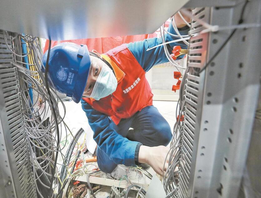 黨員服務隊隊員在±660千伏膠東換流站500千伏保護室內檢查裝置接線拆除情況。張進 攝