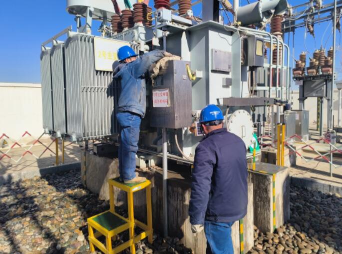 時值寒潮來襲,氣溫降至零下4攝氏度,陣陣寒風中,景泰變電運檢班人員圍繞著2號主變緊張忙碌著。他們分工明確、凝心聚力,不敢有絲毫馬虎。時間就是效率,大家心中只有一個想法:盡快縮短搶修周期,使得變電站這顆“心臟”盡快恢復強勁有力的跳動。經(jīng)過緊鑼密鼓的搶修,搶修人員及時消除了主變滲油的缺陷,經(jīng)后續(xù)觀察,主變油位正常。