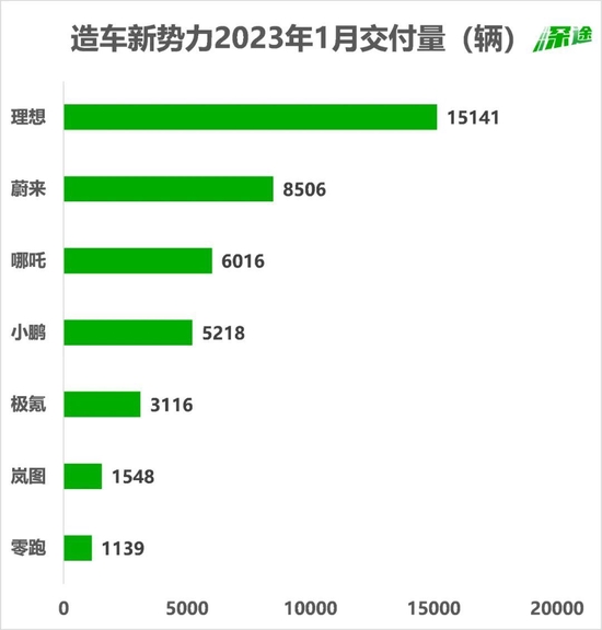 1月的交付量,過萬的只有理想。理想憑借15141輛的成績,又拿了個月度冠軍。