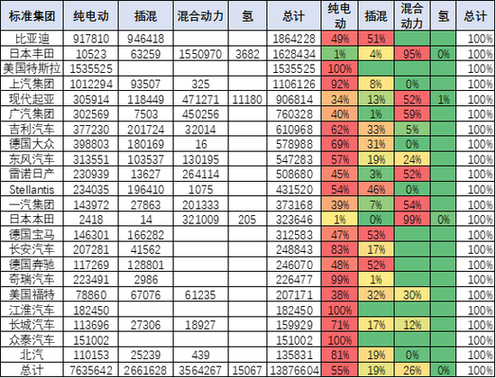 世界各廠家新能源差異明顯,豐田的混合動(dòng)力超強(qiáng),而特斯拉只有純電動(dòng),且占據(jù)絕對(duì)主力地位。